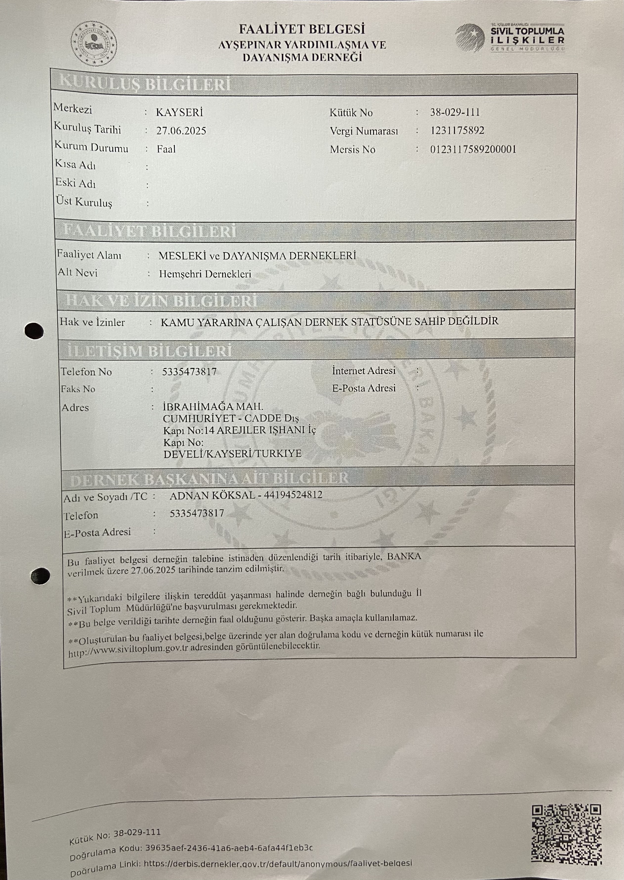 | Faaliyet Belgesi | 12-11-2025 |