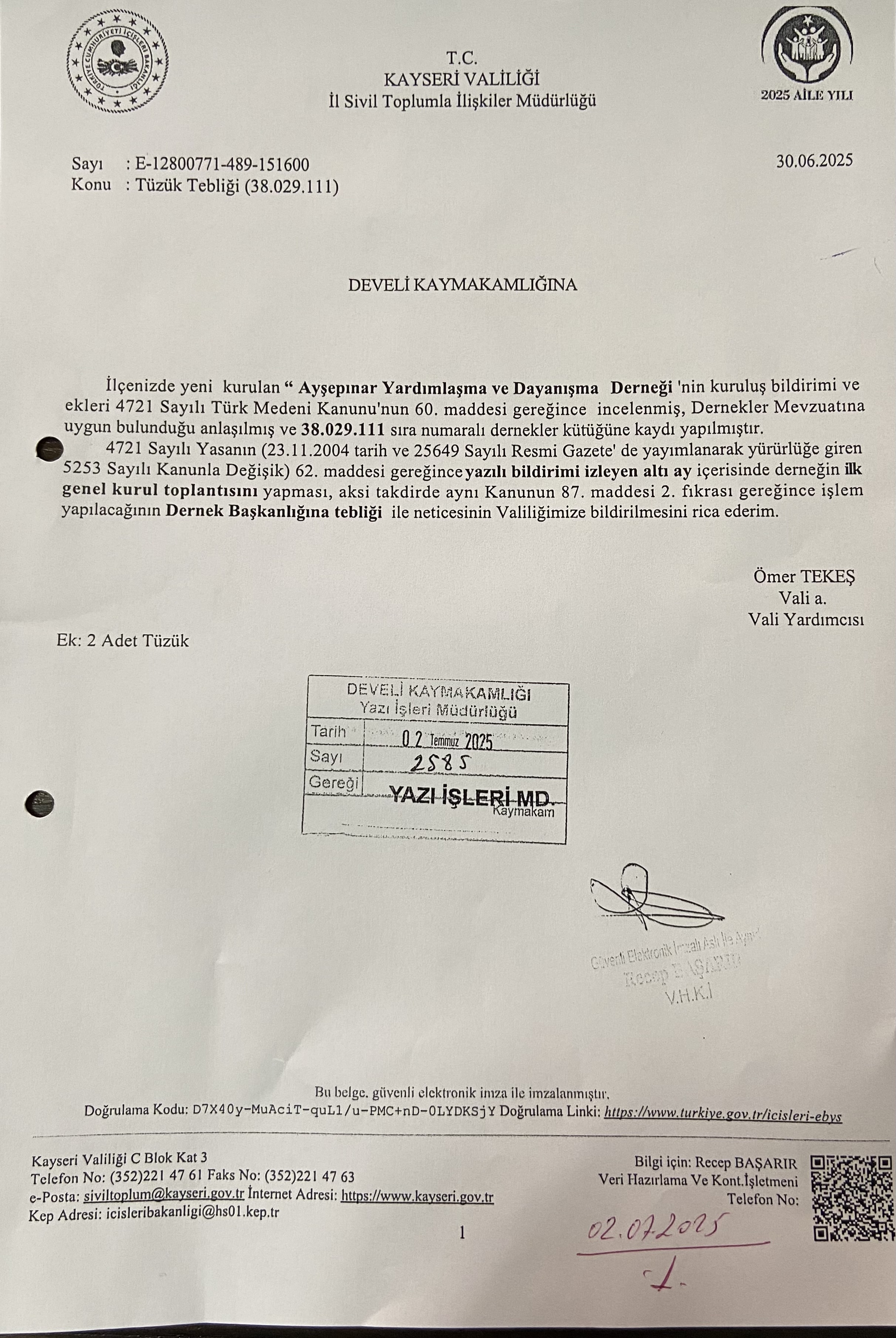 | Kaymakamlık Onayı | 12-11-2025 |